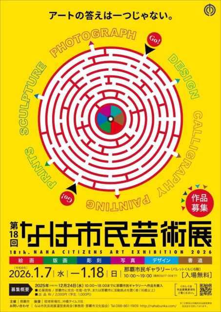 第17回なは市民芸術展は、那覇市が主催する市民参加型の芸術展です。那覇市民ギャラリーを会場に、絵画や写真、書道など、多彩な表現による市民の創作作品が展示されます。日頃の創作活動の成果に触れられる場として、また文化芸術を身近に感じられる機会として、幅広い世代に親しまれている展覧会です。